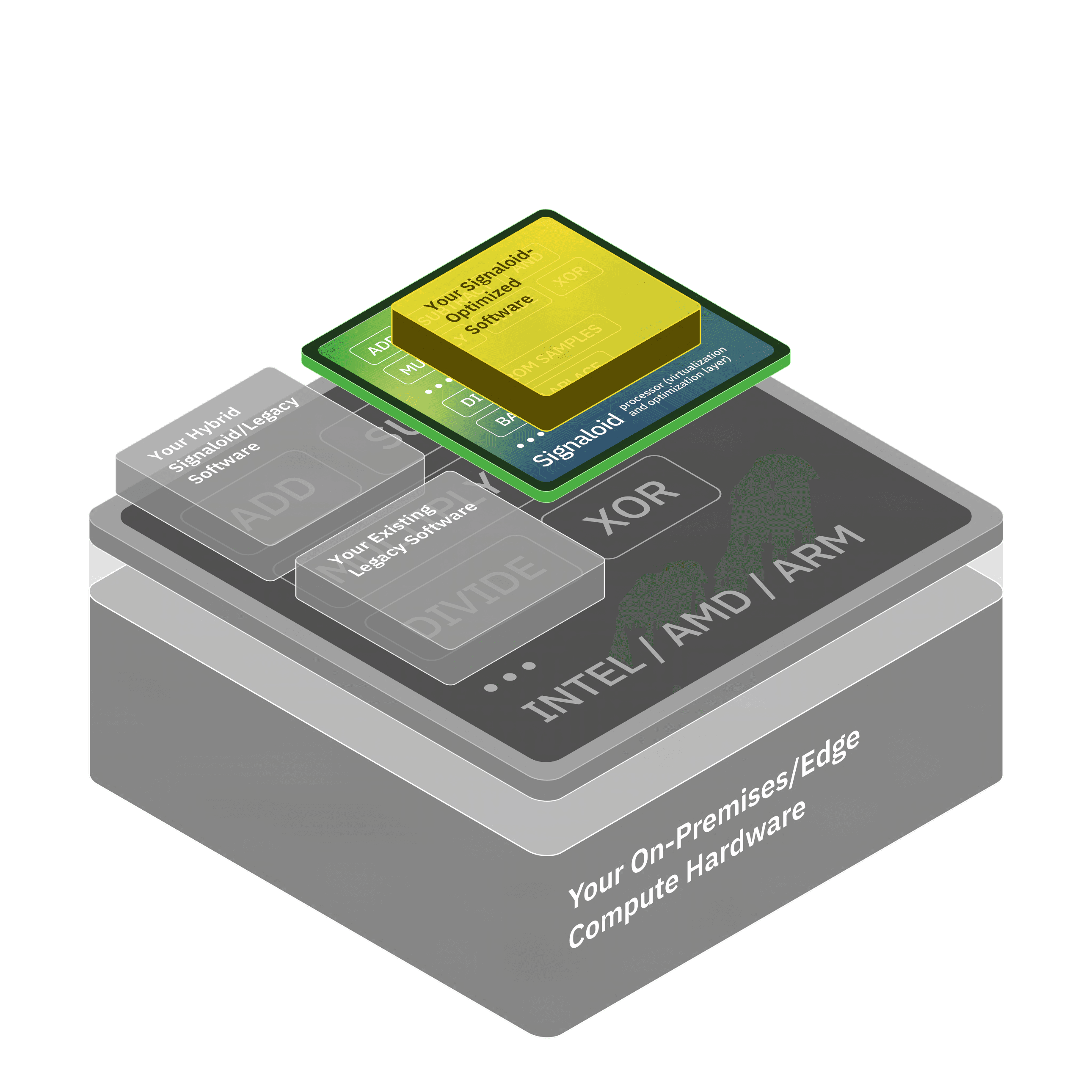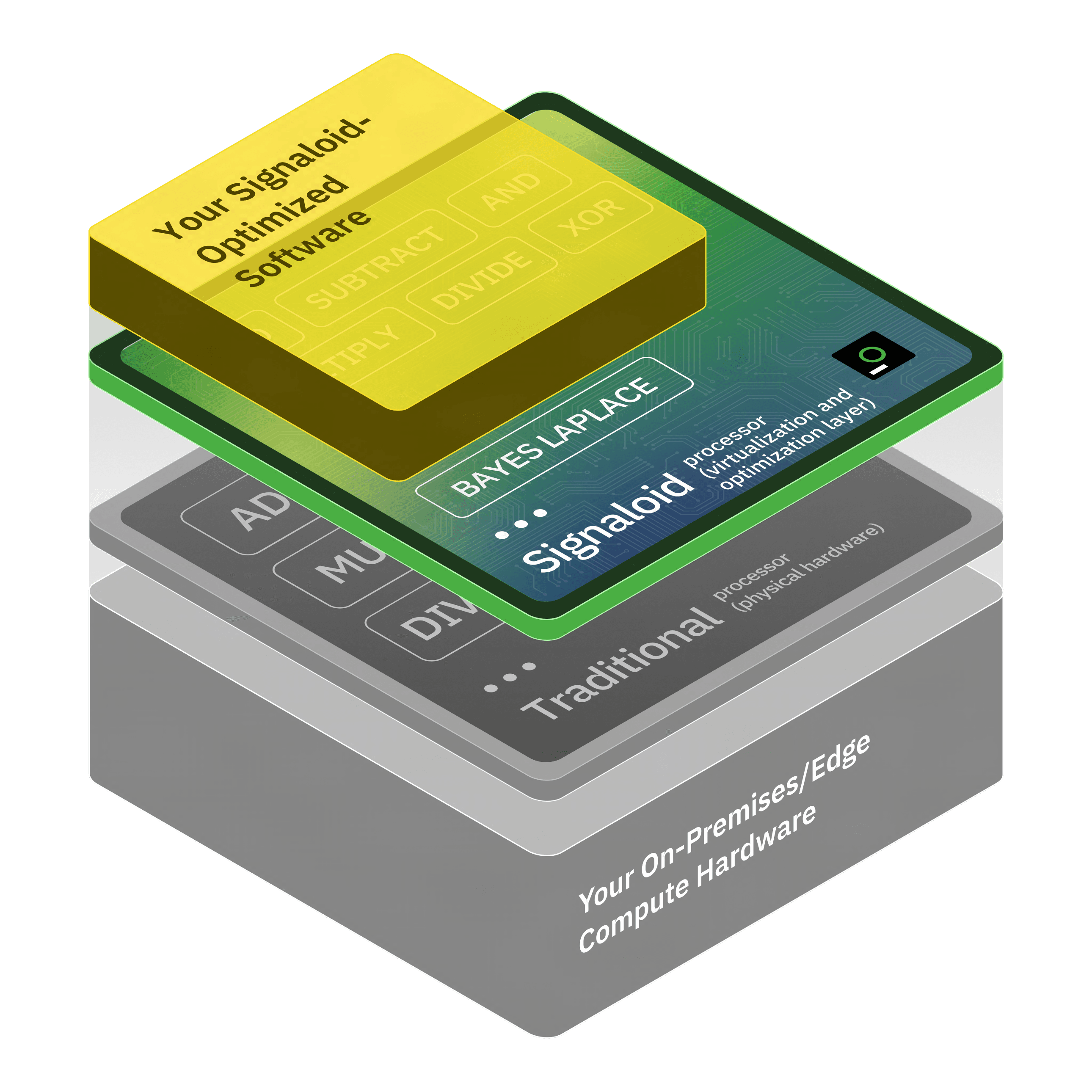 Signaloid's UxHw technology gives your applications the abstraction of running over a virtual processor whose input data can be annotated with probability distributions. The processor performs arithmetic on these distributions as it runs binaries, detecting correlations as they occur.